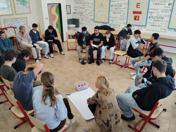 Dňa 3. októbra 2025 sa konalo druhé stretnutie pracovníčok CPP v Revúcej s našimi prvákmi, zamerané na aktivity, v ktorých sa žiaci navzájom spoznávajú. Študenti si spolu zahrali hry: Ja taktiež a Balón, v ktorých hovorili o tom, čo radi robia a ktoré veci alebo skutočnosti im v živote pomáhajú a ktoré ich sťahujú k zemi. Záver stretnutia patril papierovej vybíjanej.