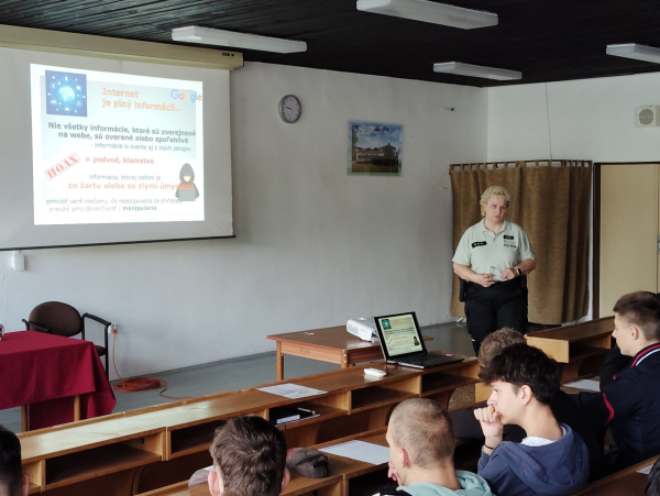 Pondelok, 13.10.2025 bol dňom, kedy sa žiaci všetkých prvých ročníkov zúčastnili besedy na tému "Bezpečný internet - viem, ako sa nezamotám do sociálnej sieti". Odborný výklad aj praktické príklady z praxe, o ktorých rozprávala npor. Mgr. Lenka Lopašovská, z Okresného riaditeľstva policajného zboru z Revúcej, študentov zaujali natoľko, že chcú v tejto problematike pokračovať aj na ďalšom stretnutí, ktoré sme naplánovali na 2. polrok.