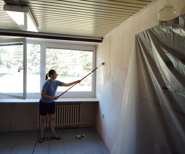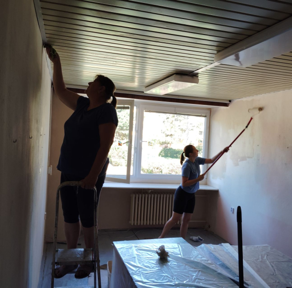 Nový školský rok v novom! To si povedali učiteľky jazykov v posledný pracovný deň, keď sa rozhodli vymaľovať si kabinet. Škola prechádza modernizáciou a zlučovaním a nový vietor a príjemné pracovné prostredie je veľmi dôležité.