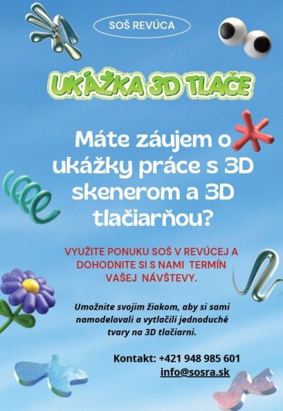 Dňa 16. mája 2025 využili žiaci zo ZŠ Hviezdoslavovej z Revúcej možnosť navštíviť 3D pracovisko v našej škole a vyskúšať si prácu s 3D skenerom a 3D tlačiarňou. Počas stretnutia im poskytol svoj odborný výklad a skúsenosti žiak III. A odboru mechanik strojov a zariadení,  Adam Tomšík. Po dvoch hodinách strávených v strojárskej učebni odchádzali žiaci spokojní, že sa niečo nové naučili z tejto oblasti a vyrobili si sami prívesky. Pozrite si krátky video z ich návštevy https://youtu.be/qDjW3ArcOoA
